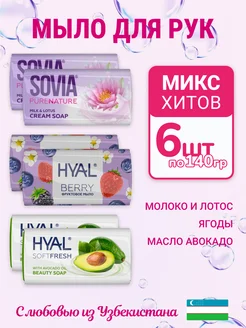 Мыло косметическое SOVIA и HYAL набор, 6 шт по 140 гр