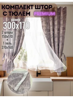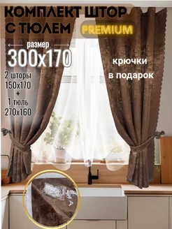 Шторы на кухню короткие с тюлем 150х170-2шт, 270х160-1шт