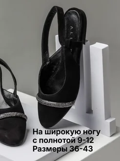 Туфли слингбэки на широкую ногу натуральная кожа