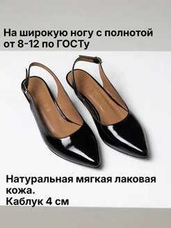 Туфли слингбэки на широкую ногу из натуральной лаковой кожи
