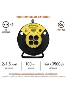 Удлинитель на пластиковой катушке ПВС 2х1,5м 100м