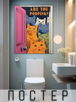 Постер в туалет Коты Ты что, какаешь? 50х40см
