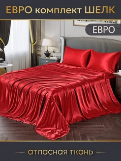 Атласный комплект постельного белья Евро, 2-спальный