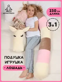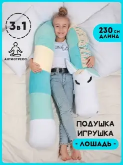 Лошадь мягкая игрушка обнимашка валик длинный 230 см