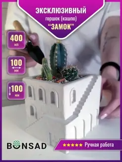 Кашпо для суккулентов и кактусов декоративное из гипса