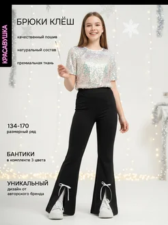 Брюки новогодние школьные нарядные клеш с разрезами