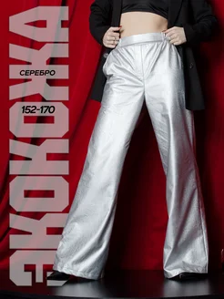 Брюки блестящие нарядные широкие серебристые трубы палаццо