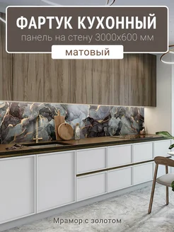 Фартук для кухни на стену 3000х600 мм, Мрамор с золотом