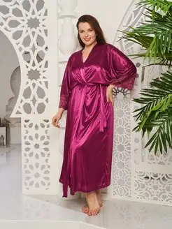 Ночная сорочка шелковая длинная с кружевом на бретельках