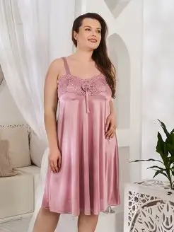 Ночная сорочка шелковая короткая с кружевом на бретельках