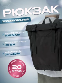Рюкзак ролл топ черный вместительный для ноутбука