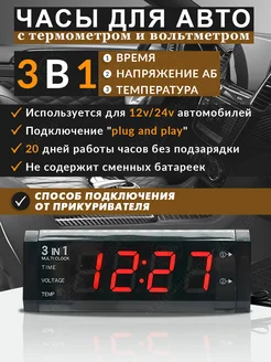Автомобильные часы в машину термометр вольтметр