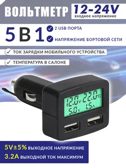 Разветвитель прикуривателя термометр вольтметр с 2 USB