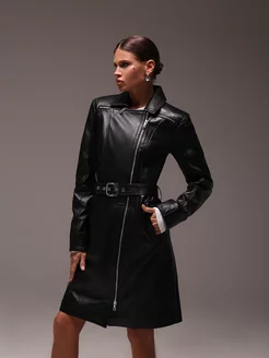 Кожаный плащ длинный весна тренч Турция