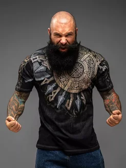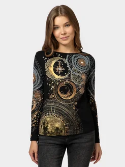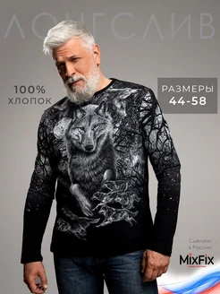 Лонгслив больших размеров с принтом волки хлопок 100%