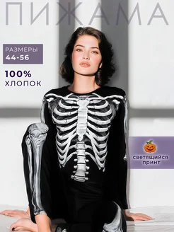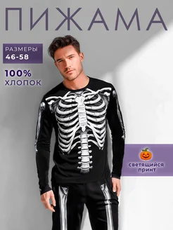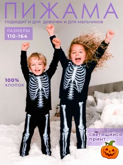 Пижама с принтом скелет светящаяся на Хэллоуин