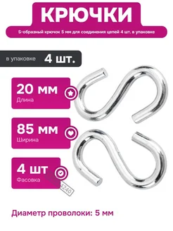 S-образный крючок 5 мм для соединения цепей и элементов
