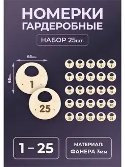 Номерки гардеробные из дерева 65х65х3мм №1-25