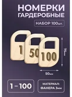 Номерки гардеробные из дерева 75х50х3мм №1-100