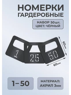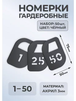 Номерки гардеробные из черного акрила 75х50х3мм №1-50
