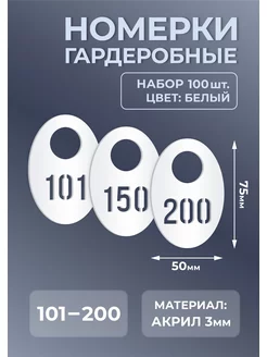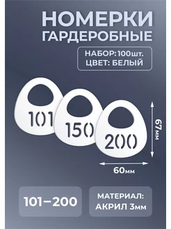Номерки гардеробные из белого акрила 75х50х3мм №101-200
