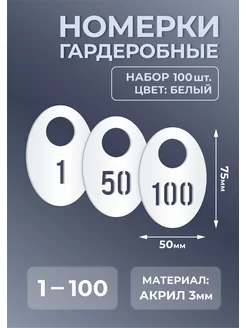 Номерки гардеробные из белого акрила 75х50х3мм №1-100