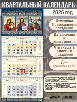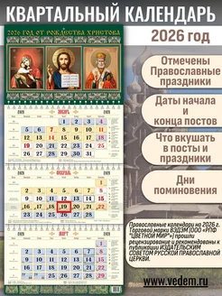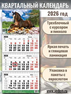 Календарь квартальный трехблочный на 2026 год "Символ года"