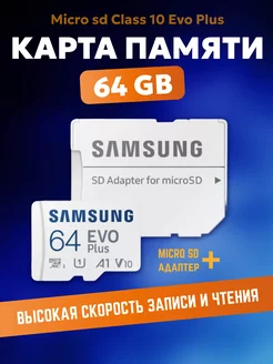 Карта памяти Microsd Samsung Class 10 Evo Plus 64 gb