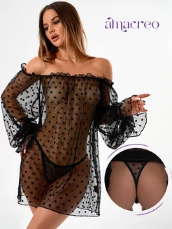 Пеньюар женский прозрачный комплект со стрингами