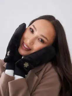 Зимние женские варежки экомех