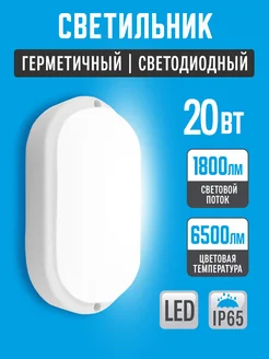 Светильник влагозащищенный 20Вт 6500К овал, светодиодный