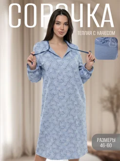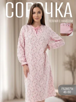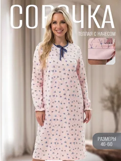 Ночная сорочка женская теплая с рукавом больших размеров