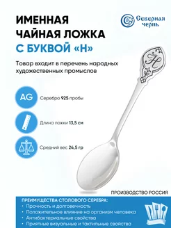 Серебряная чайная ложка буквой "Н" 925 пробы