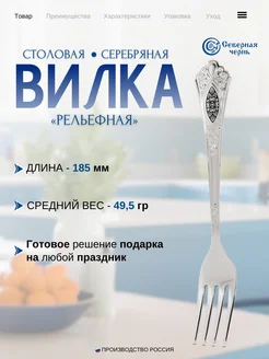 Серебряная столовая вилка Рельефная