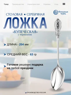 Серебряная столовая ложка "Купеческая" с чернением 925пробы