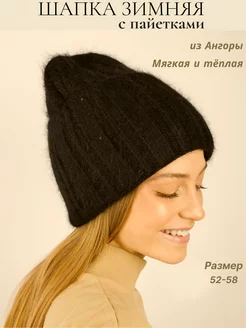 Шапка зимняя вязаная ангора с пайетками