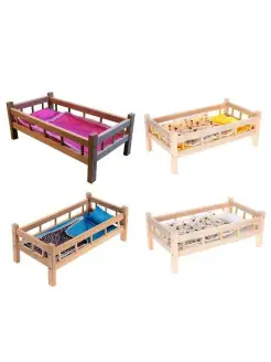 Кроватка для кукол №10 деревянная с бельем (44,5х22,5х18см)