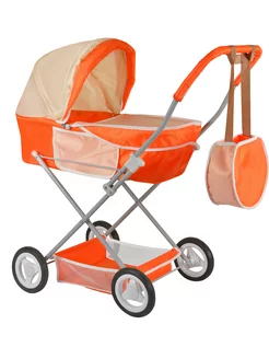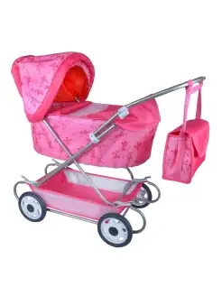 Коляска кукольная №6 (металл.) Розовая (с сумочкой)