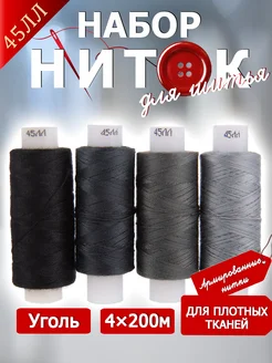 Набор ниток для шитья 45ЛЛ 4 х 200 м "Уголь"