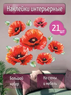 Наклейки на стену маки для декора интерьера