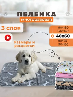Пеленки многоразовая для собак 60х40 см непромокаемая