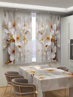 Шторы на кухню короткие 2 шт 150 на 180 см комплект