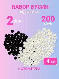Черно-белые бусины под жемчуг для плетения и рукоделия