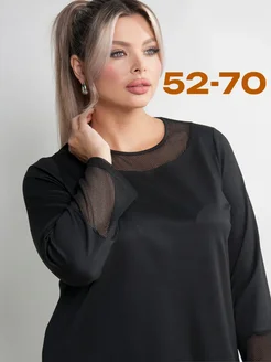 Джемпер оверсайз нарядный больших размеров с сеткой