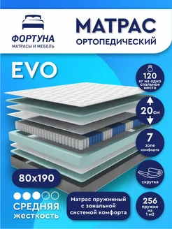 Матрас EVO 80х200 на кровать пружинный ортопедический