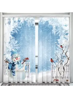 Фотошторы, занавески в комнату Милый снеговик 290*260