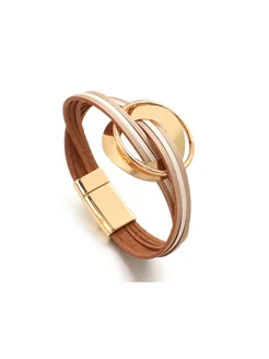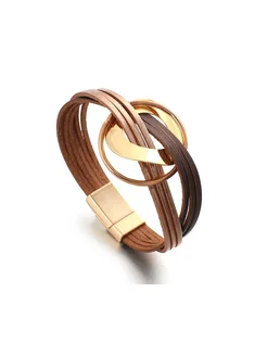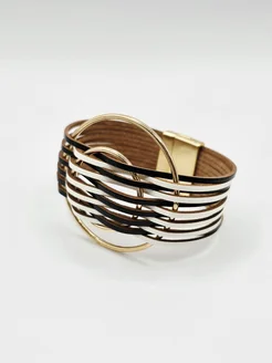 Браслет кожаный многослойный на магнитном застежке