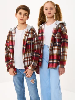 Рубашка в клетку оверсайз с капюшоном