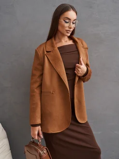 Пиджак оверсайз замшевый жакет удлиненный блейзер