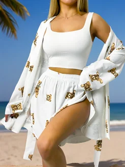Костюм женский летний с шортами и кимоно шелковый
